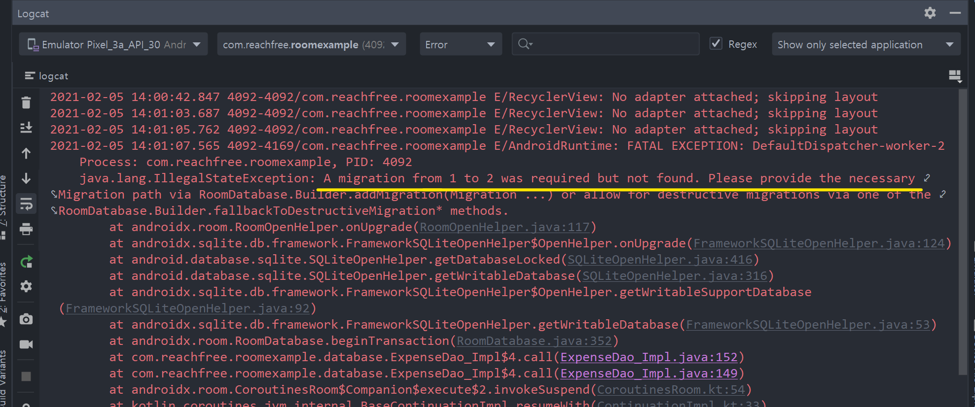 override fun migrate(database: SupportSQLiteDatabase) {