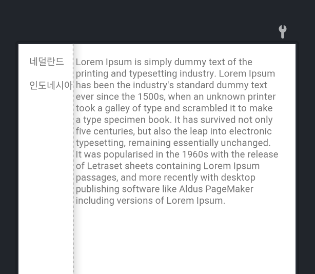 한국어에서는 네덜란드보다 인도네시아 글자가 더 길기 때문에 아래와 같이 레이아웃이 망가져서 보일 것입니다.